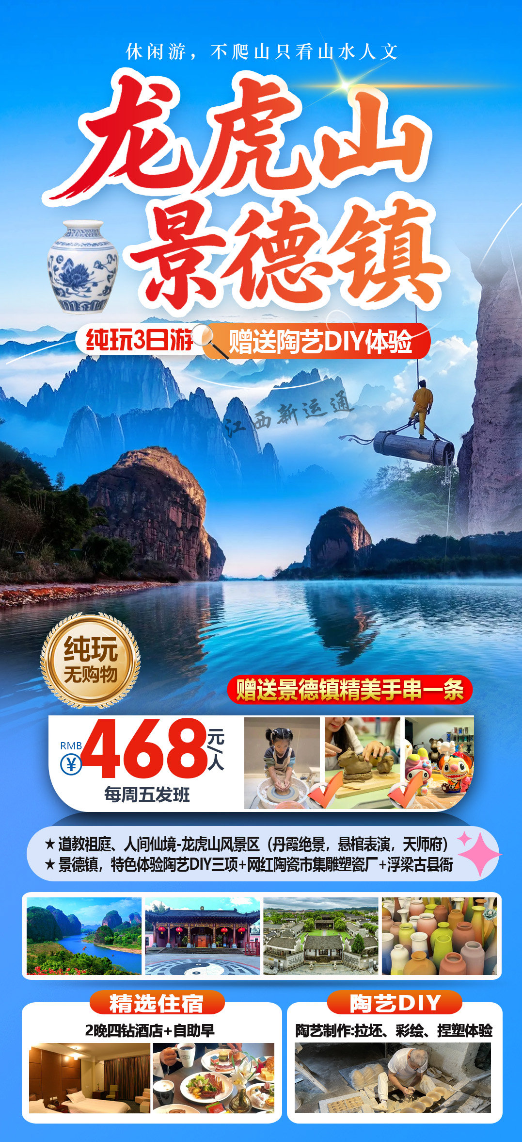 ★ 世界瓷都——景德镇,DIY陶艺3项体验+浮梁古县衙+逛陶瓷网红集市;