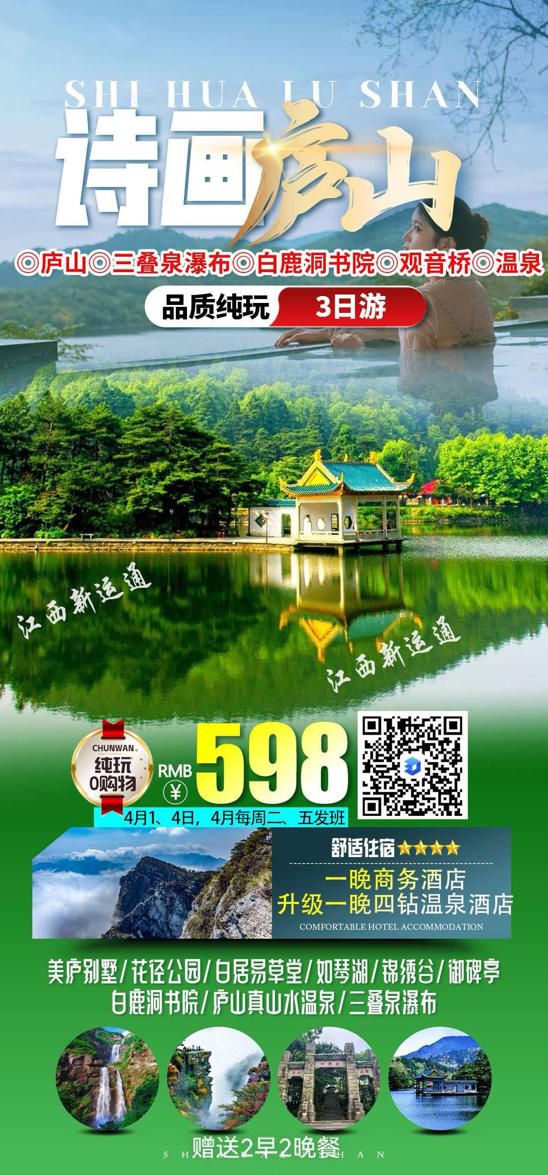 ★ 赠送2早2晚餐,升级1晚四钻温泉酒店住宿(赠送温泉)+1晚商务酒店住宿!
